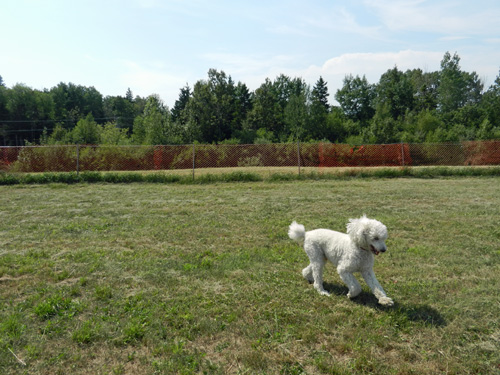 Two weeks before the weed cutting battle was raging at St. Thomas City Hall, the King’s County Record in Sussex NB published this article entitled “Thirsty pooches should be pleased.” The town council approved the expenditure to install a water fountain for the dogs, replace the snow fencing with chainlink and create a small dog area in the town’s dog park. I don’t know what kind of negotiations preceded this decision, but it was nice to read Mayor Marc Thorne saying “There are a lot of dogs in town, and residential properties don’t have the amount of space they need to get a healthy workout.”