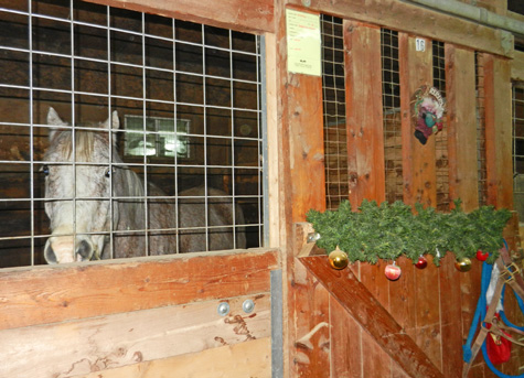 Their stalls are decorated, the horses snugged in. Wintertime at the stable, and Christmas approaching. Stockings soon will be hung on stall doors.