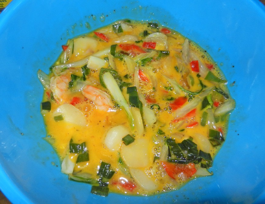 - 6 well-beaten eggs,