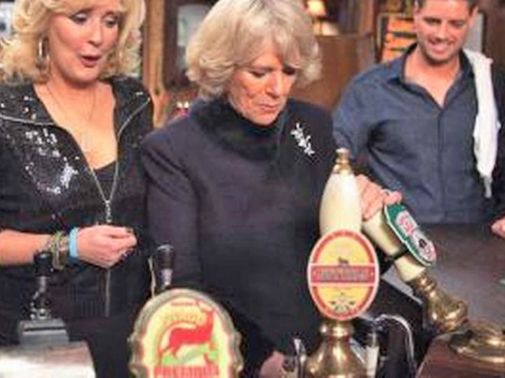 Camilla visited the street in February 2010 as part of the show’s 50th anniversary year, and poured a pint in the Rovers Return. She wore a specially-made silver brooch of Hilda Ogden’s flying ducks.